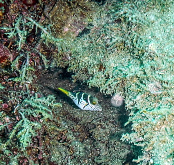 第2ケーソンに戻りタイヤロープだまりまで行くとシマキンチャクフグがパタパタ泳いでいます。