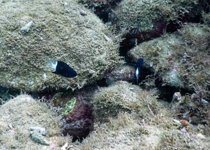 ゴロタ移動では、たくさんのシコクスズメダイがいます。
