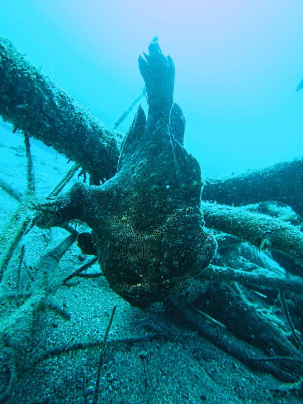 そして、昔パイプが組まれていた砂地(水深15m前後)にはオオモンカエルアンコウが!