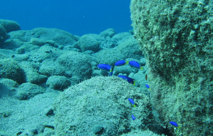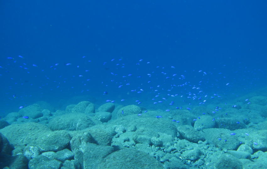 浅場5~8mはきらきらとブルーのソラスズメダイがいっぱいです。